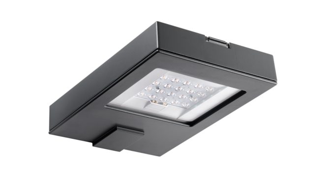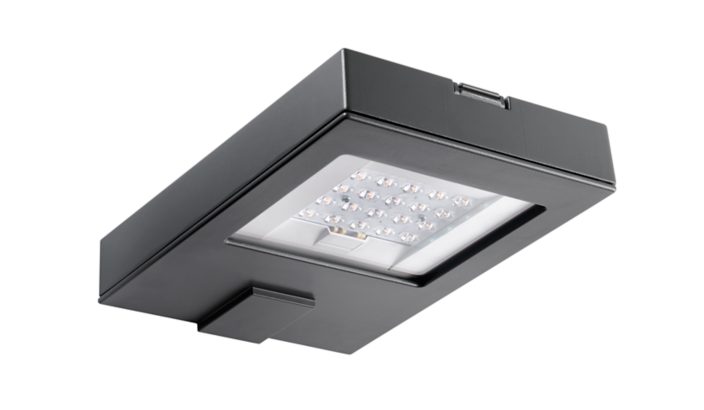 Urban road & street light, Fonte d’aluminium, Gris, Montage sur mât, Bloc d'alimentation avec interface DALI, 2640 lm, 19.6 W, 135 lm/W, 3000 K, (0.434, 0.403) SDCM<5, CRI70, Distribution semi-intensive 50, IP66 | Protection contre la pénétration de poussière, protection contre les jets d’eau, IK09 | 10 J, Classe de sécurité II, Niveau de protection contre les surtensions jusqu'à 10 kV en mode différentiel et 10 kV en mode commun, Connecteur interne
