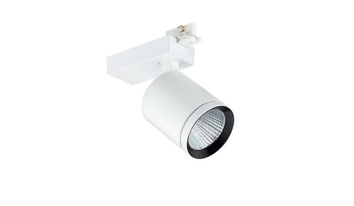 Performance, track projector, Aluminium, Blanc, Blanc pur (RAL9010), Bloc d’alimentation électrique (Marche/Arrêt), 6000 lm, 44 W, 143 lm/W, 3000 K, (0.434,0.403)<3, Réflecteur métallique haute réflexion - faisceau semi-extensif 20 à 40°, IP20 | Protection des doigts, IK02 | 0,2 J standard, Classe de sécurité II, Rail 3C