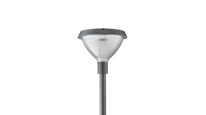 Urban road & street light, Aluminiumdruckguss ADC1 - Legierungsklasse (EN AC-47100), Anthrazit, Mastspitze für Durchmesser 62 mm, Netzteil mit DALI-Schnittstelle, 1494 lm, 12.4 W, 120 lm/W, 3000 K, (0.434, 0.403) SDCM<5, CRI70, Extrem breitstrahlende Lichtverteilung DX52, IP66 | Schutz gegen Eindringen von Staub, strahlwassergeschützt, IK10 | 20 J vandalismusgeschützt, Schutzklasse I, Überspannungsschutz bis 6 kV im Gegentaktmodus und bis 6 kV im Gleichtaktmodus, Schraubanschlussblock, 5-polig